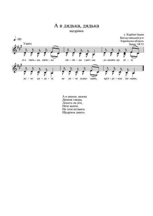 | Місце запису | с. Корбині Івани, Богодухівський район, Харківська обл., Україна, Слобожанщина |